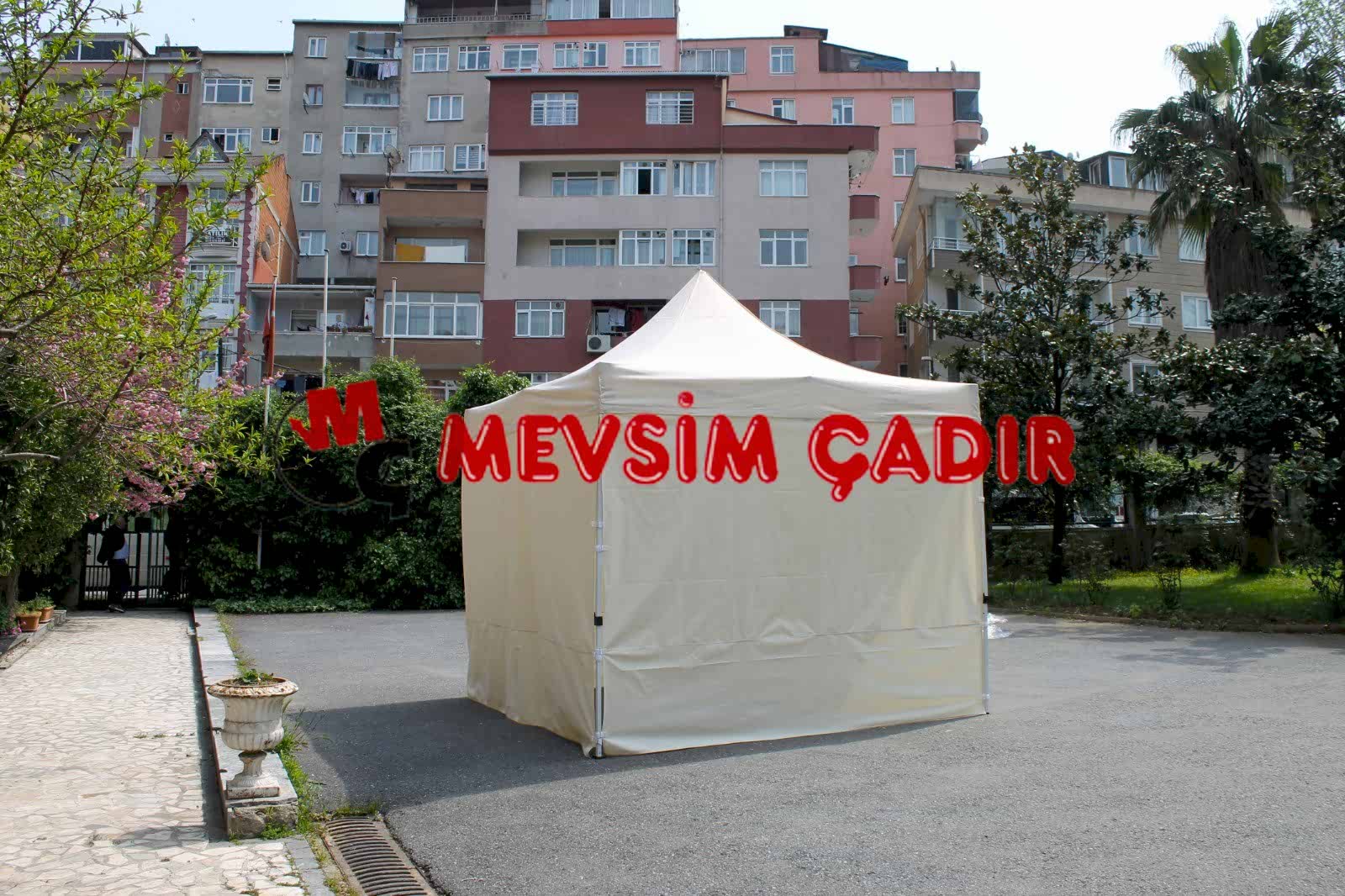 Gazebo çadırlarının özelliklerinden biri de yan kısımlarına ve ön tarafında duvar görevi görebilecek tenteler eklenebilir olmasıdır. Bunun için kurulum esnasında yan taraflara ve ön kısma kumaş giydirilir.