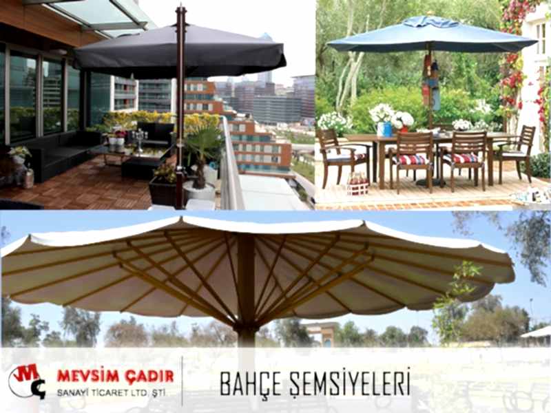 Mevsim Çadır olarak, yerli ve ithal kumaş seçenekleri ile birbirinden renkli bahçe şemsiyeleri üretmekteyiz. Üretmiş olduğumuz bahçe şemsiyeleri, sizleri güneşin zararlı etkilerinden koruyacağı gibi, bulunduğunuz mekanın dekorasyonunu da değiştirecek ve güzelleştirecektir.