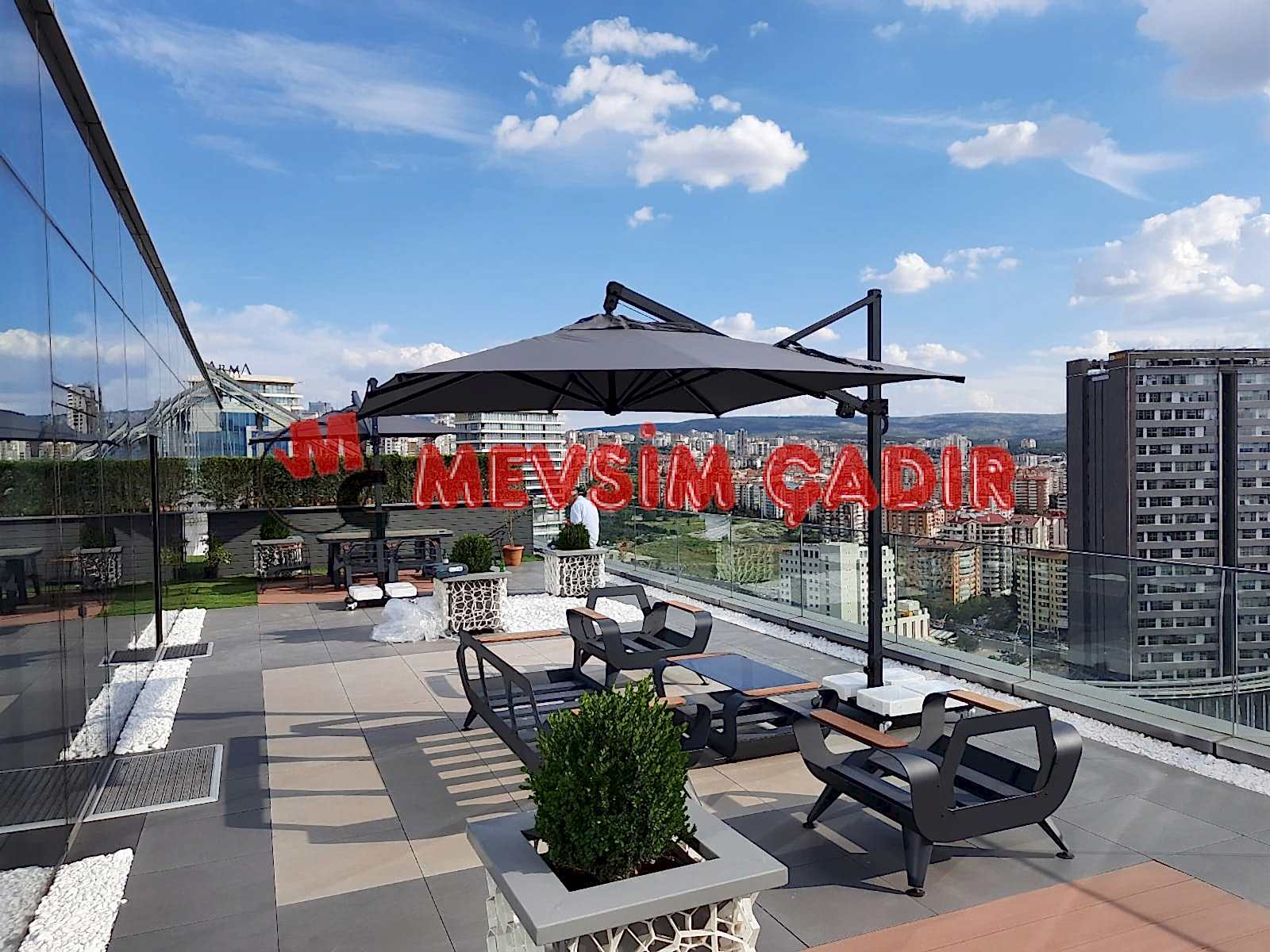 Özellikle işletmeleri için tercih eden müşterilerimiz, şemsiye bölümüne logo yaptırabilir ve firma tanıtımlarını modern bir şekilde yapabilir.